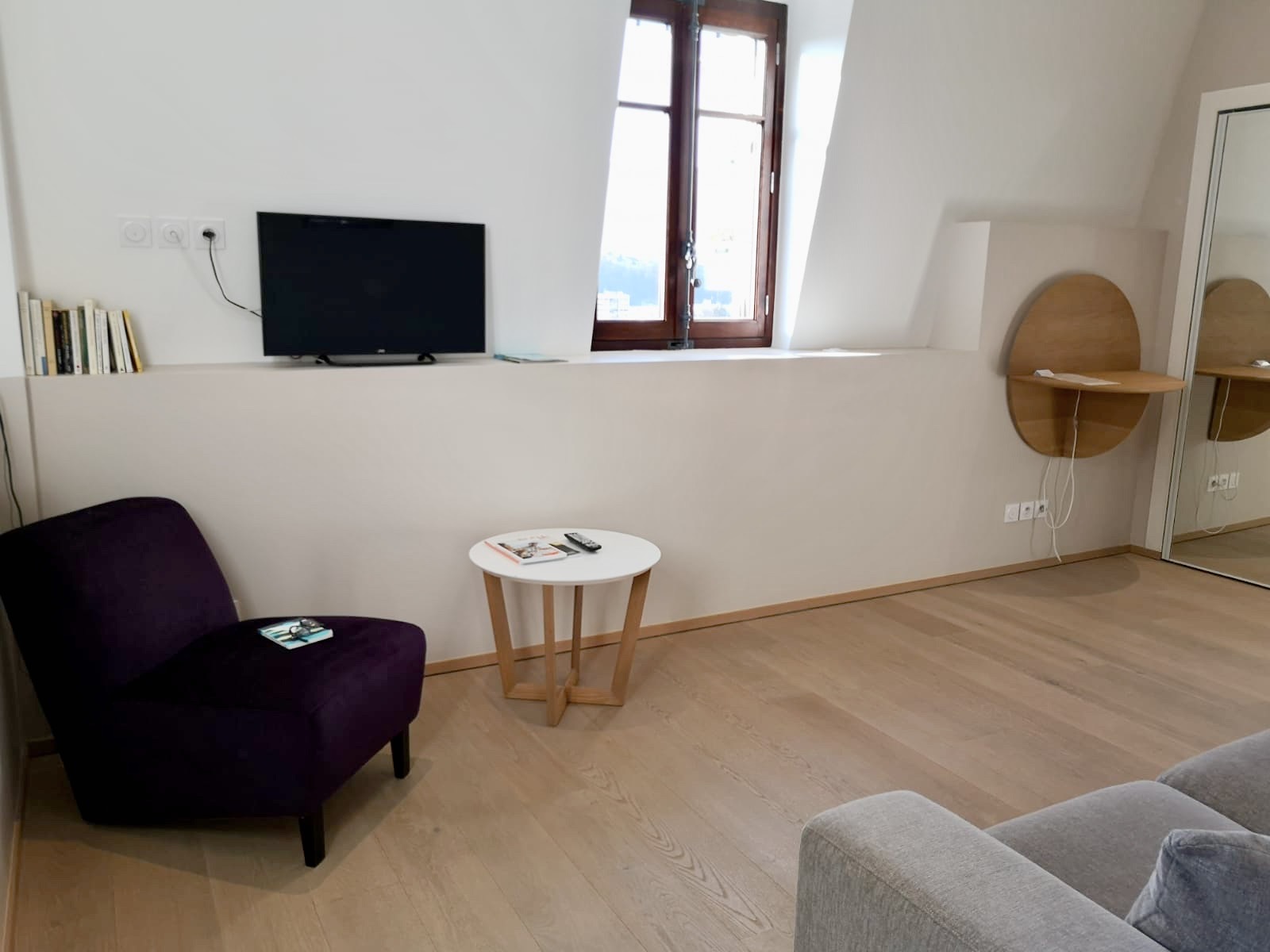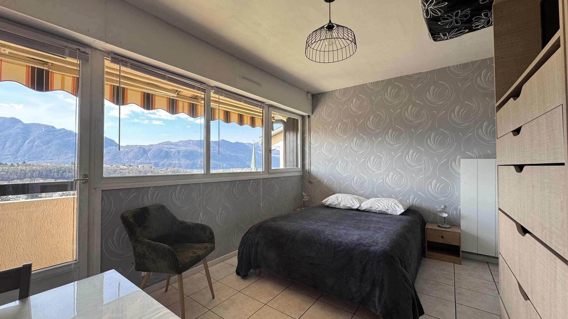 TYPE 3 à proximité des commerces et du centre ville. Depuis sa terrasse, vous pourrez profiter de sa belle vue dégagée sur les montagnes. Ascenseur - Garage - Wifi
